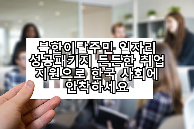 북한이탈주민 일자리 성공패키지 든든한 취업 지원으로 한국 사회에 안착하세요